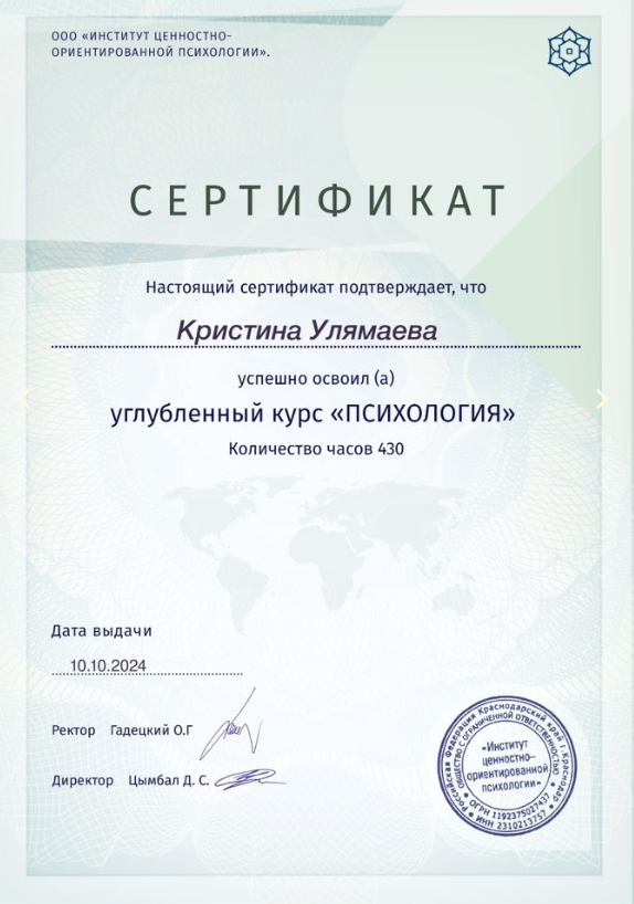 Меня уже долгое время мучила одна проблема, которая повторяется в моей жизни снова и снова. И я понимая и принимая этот факт не могла ничего сделать с этим. Чтобы разобраться в себе и в своей проблеме глубже я обратилась к чудесной Кристине, которая со всей душой хотела мне помочь. Во время консультации она задавала наводящие вопросы и благодаря им я сама приходила к каким-то выводам, которые освобождали мою голову от тревоги и лишних переживаний. После практики действительно будто груз с плеч свалился и словно открылось новое дыхание. Уже те проблемы, которые меня волновали, казались мне такими незначительными и пустыми. Спасибо тебе, Кристин, за тебя❤️